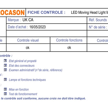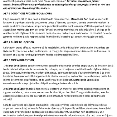 La location de matériel professionnel est régie par les présentes et par les conditions de location de matériel figurant au verso de la fiche "points de contrôle".